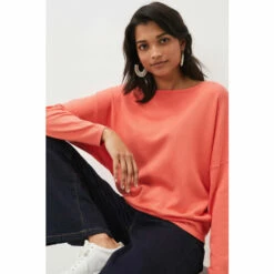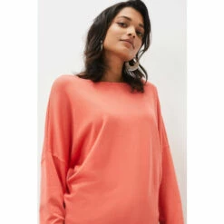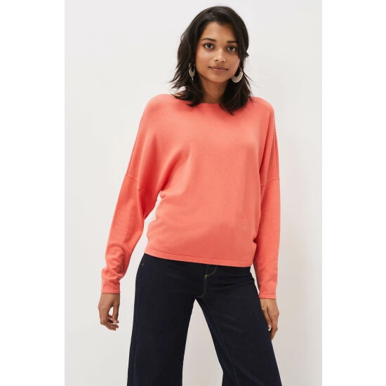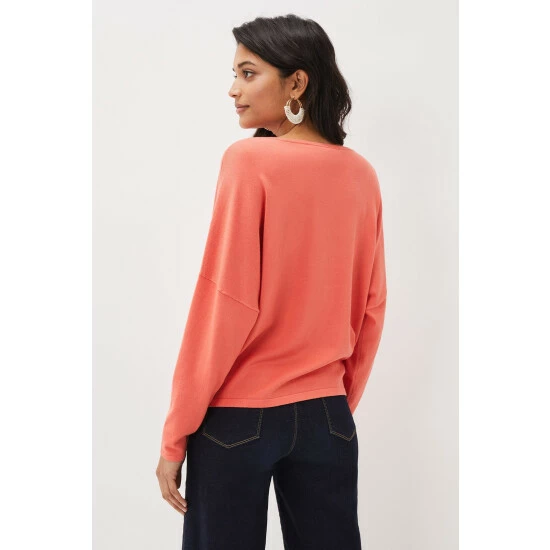 A vibrant coral shade and easy silhouette will make their Olivian Fine Knit Jumper one of your go-to knits for the season. Finished with exposed seams detailing, a slash neckline and long sleeves.