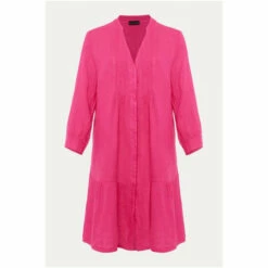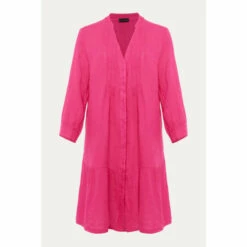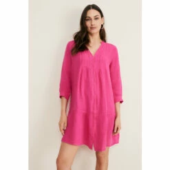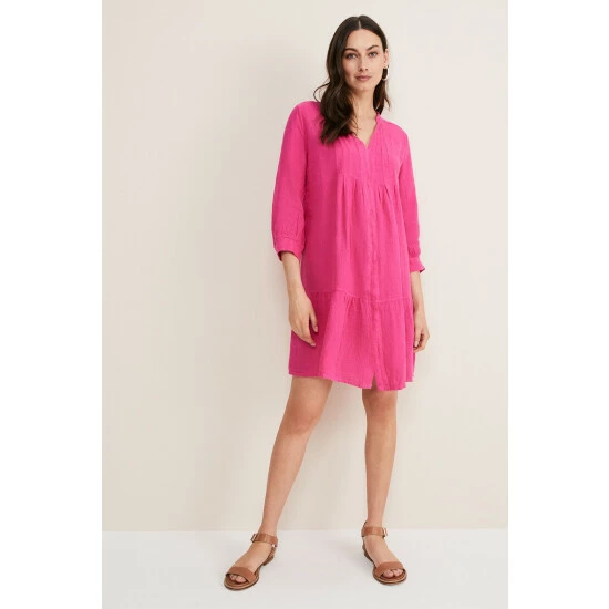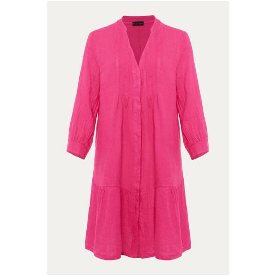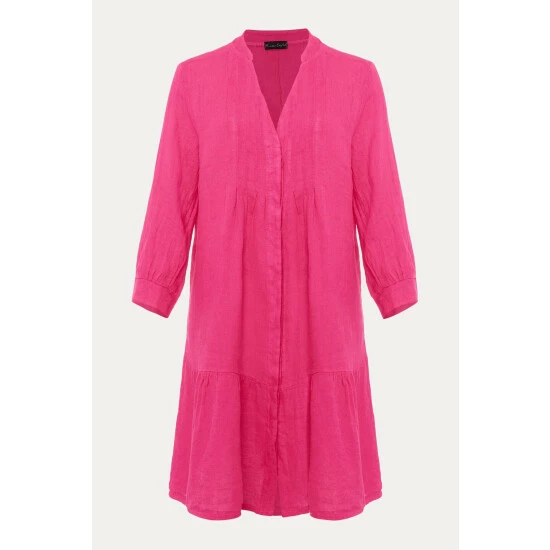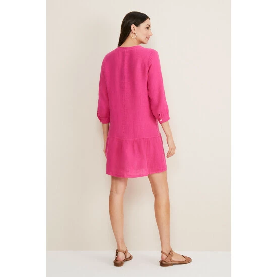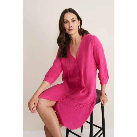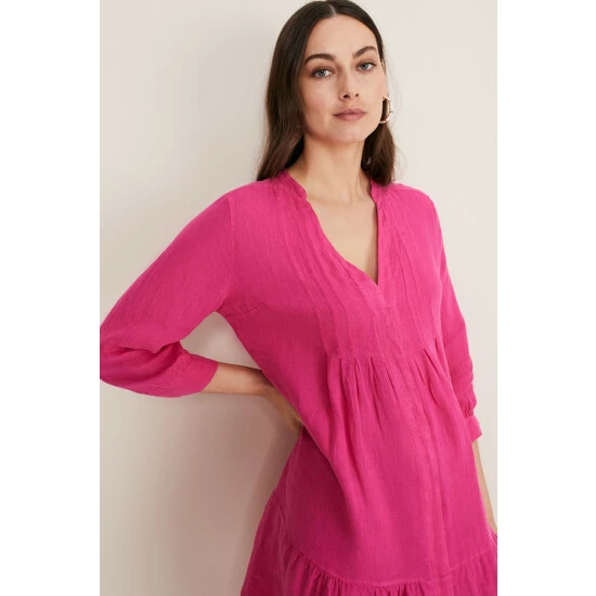 The much-loved Penele silhouette returns in spring/summer ready magenta. Cut from 100% linen and designed with softly puff sleeves, a notched neckline, pintuck detailing on the bodice and a feminine peplum hem. The Penele is perfect for pairing with tan sandals.
