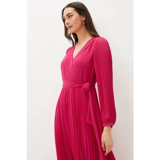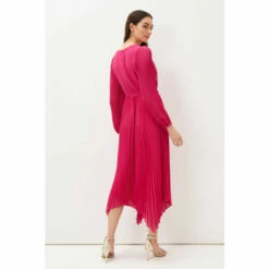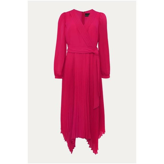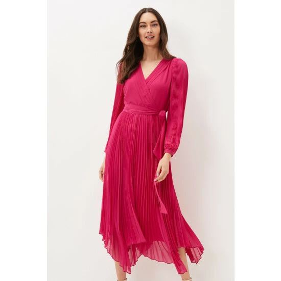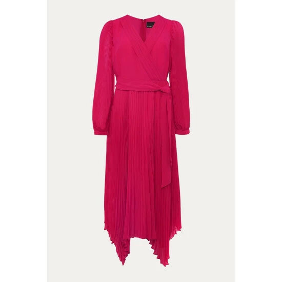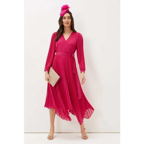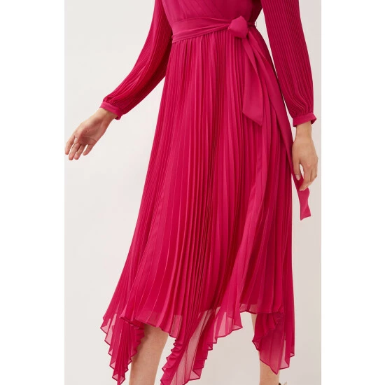 Effortlessly elegant, our Petra dress showcases a beautiful cherry pink shade with delicate pleated high low skirt that creates wonderful movement as you walk. The perfect option for wearing to your next special occasion.