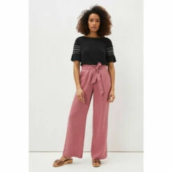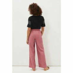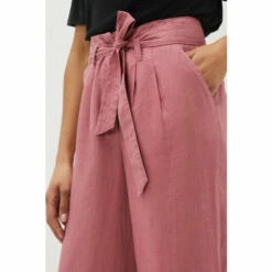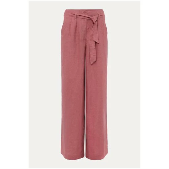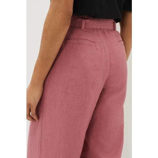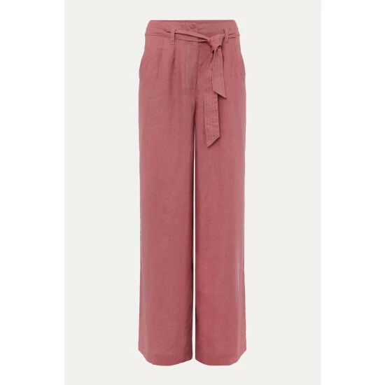 Your new go-to trousers. Designed in a gorgeous dusty pink shade, these airy 100% linen trousers feature a loose, wide leg silhouette and a self-tie belt to accentuate your waist. Wear with all of your neutral tops and blouses.