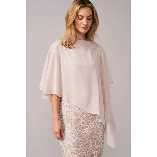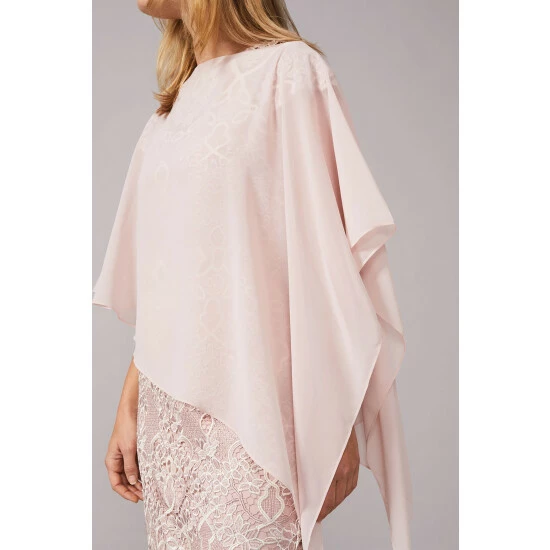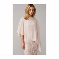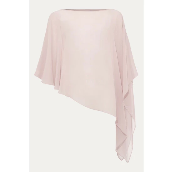 An elegant asymmetric coverup completed with a luxe, occasion-ready shine finish.