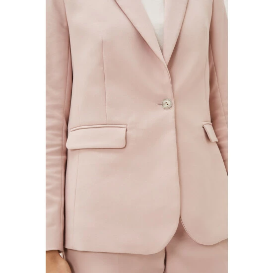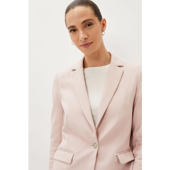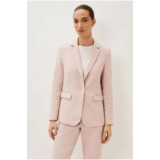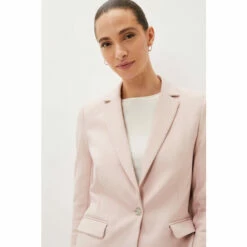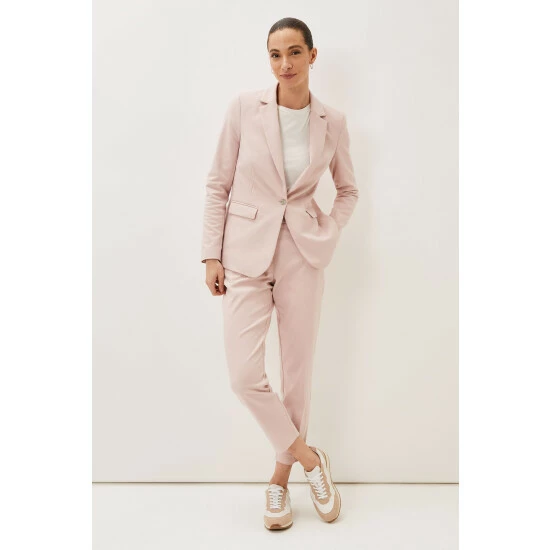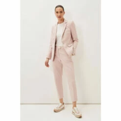 Make a stylish statement with Phase Eight’s contemporary Ulrica suit jacket. This single breasted style is designed in a feminine pale pink hue and is designed with white button detailing, pockets and front and back jacket pleats. Suiting is always on-trend so match your blazer with their Ulrica trousers to complete the look, or mix and match for endless outfit opportunities.