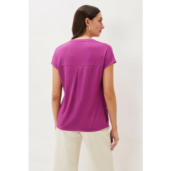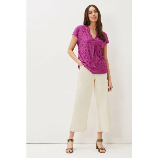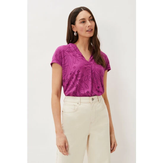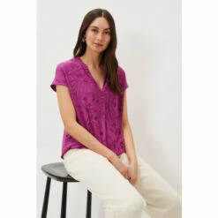 The perfect spring/summer top to have in your wardrobe. Designed with floral burnout detailing, this top features a feminine V-neckline and a comfortable fit, its vibrant magenta fabric will be sure to elevate any of your daytime looks. Pair with jeans and trainers for a casual weekend look. Part of their Sustainably Sourced Collection. This style has been made from certified renewable wood sources. LENZING; ECOVERO; viscose uses a responsible production process, generating up to 50% lower emissions and water impact than generic viscose.