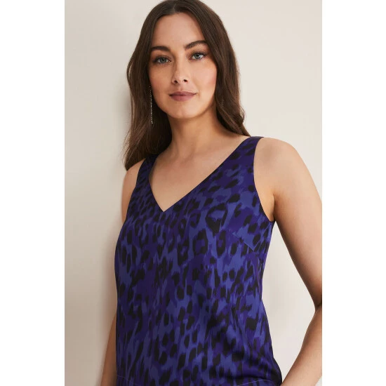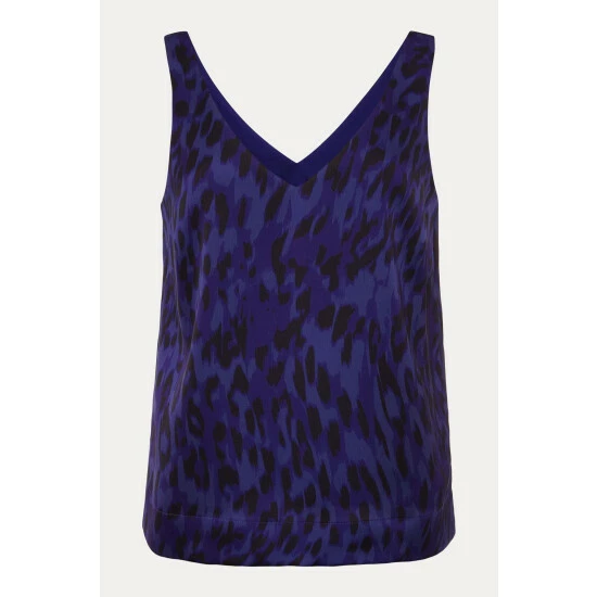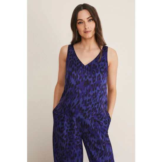 Embrace statement style with our Coletta top. Designed in a bold blue leopard print, our sleeveless top features a feminine V-neckline.