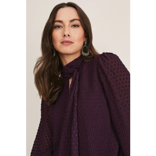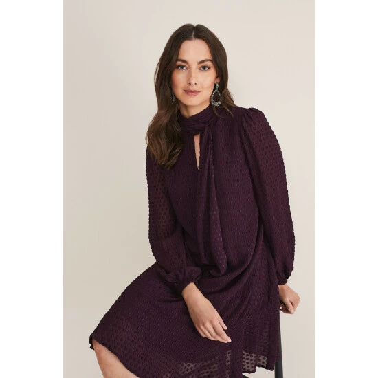 Your new do-it-all dress. Our effortless swing dress is elevated by the romantic silhouette, dobby detailing and pussy-bow ties. We wear ours with leather knee-high boots for the perfect desk-to-dinner look.