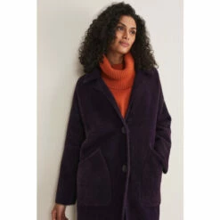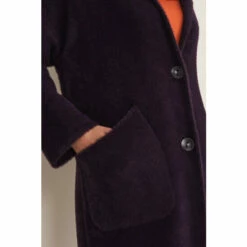 A stylish and cosy coat designed in an on-trend fluffy knit. Floressa is designed with notch lapels, two button fastening and deep patch pockets. We love the modern exposed seam detail trailing down the back. We wear ours over jeans and a knit for a casual weekend look.