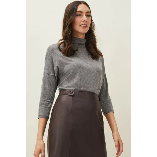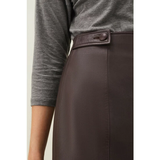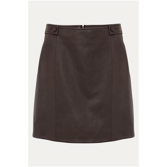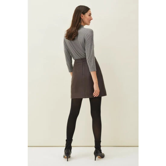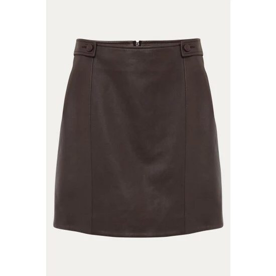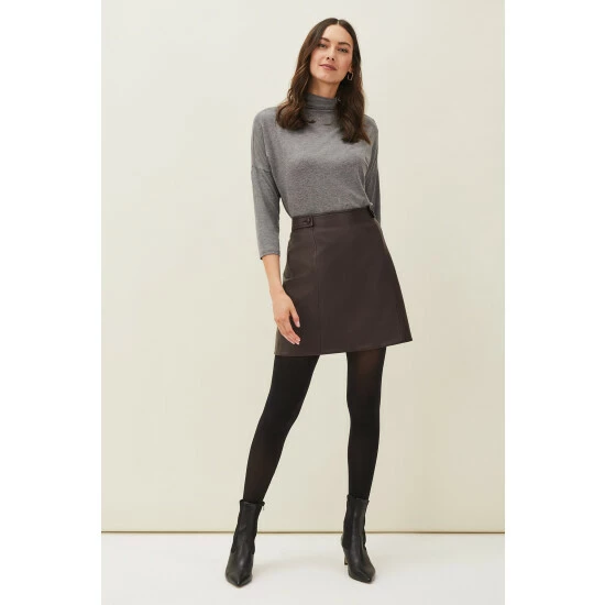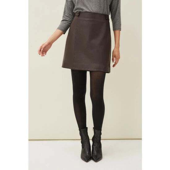 Part of Phase Eight’s Sustainably Sourced Collection. By purchasing this product, you are supporting responsible leather manufacturing through the Leather Working Group. Cut in a classic A-line shape, the Nadina skirt is made from buttery soft faux leather for a premium finish. Button tabs and seaming accent this style which is fastened with an exposed zip at the back. Wear yours year-round with jumpers, blouses and t-shirts.