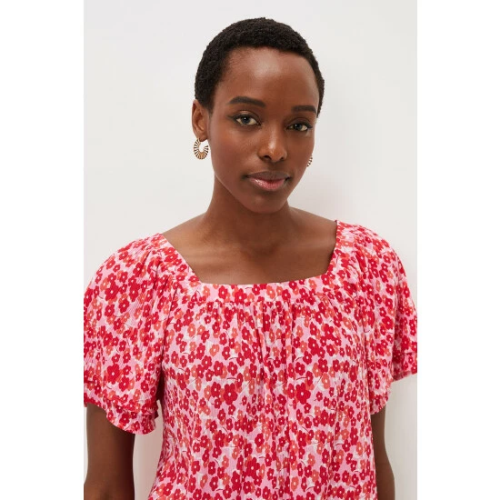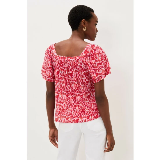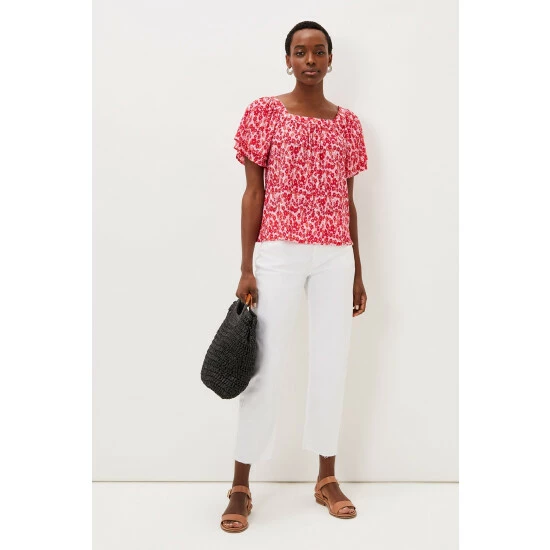 The perfect, lightweight top for your spring/summer wardrobe. Designed in a delicate ditsy print, Phase Eight’s Saffy top features a square neckline and tiered frilled short sleeves. Phase Eight wear theirs with white jeans and sandals for a casual, warm weather look.