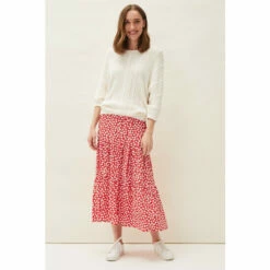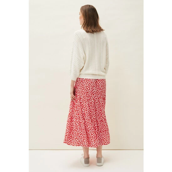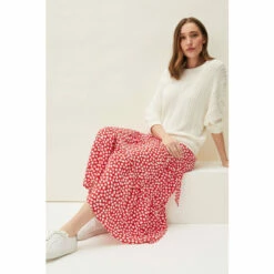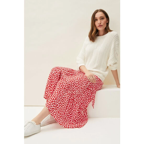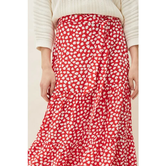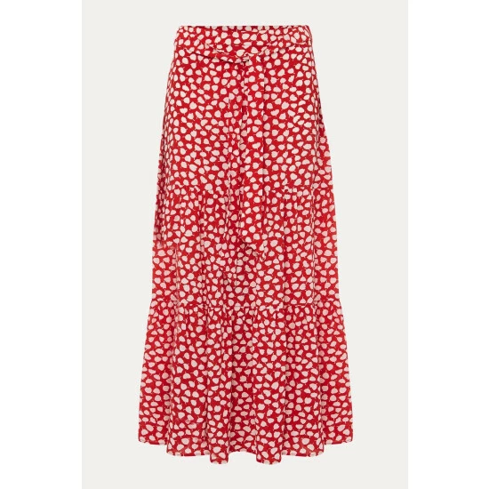 Designed to sit high on the waist, the Tana Skirt falls to a maxi length and is printed with a contrast leaf print throughout. Finished with a playful peplum hem and matching waist tie.