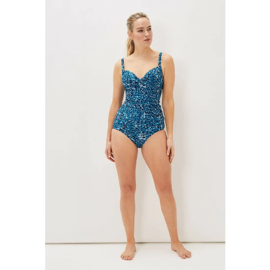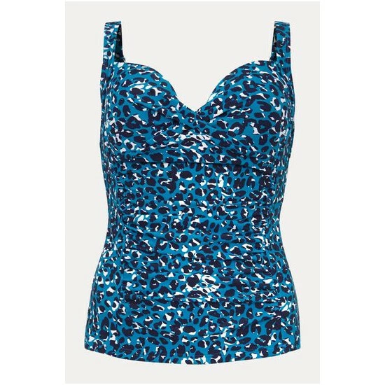 Phase Eight’s Sara top is designed in one of their best-selling swimwear shapes and designed in an on-trend turquoise animal print with ruched detailing and a twist neckline for a flattering finish.