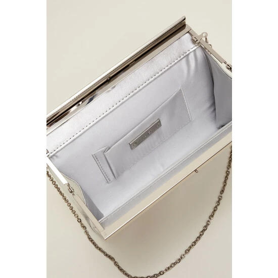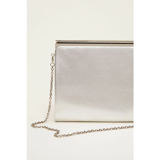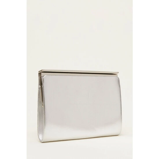 The silver clutch that will go with all your event-ready outfits. Designed in a stunning silver, it’s the perfect size to hold all of your essentials and features top metallic-snap fastening.