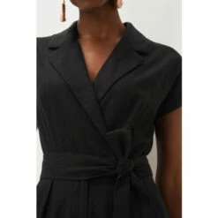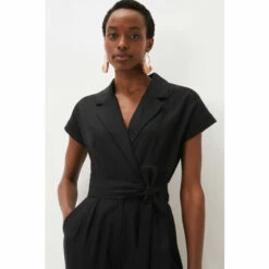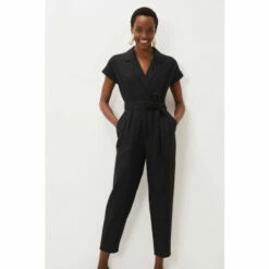 Your new staple jumpsuit. Designed in a versatile black shade that will forever be a seasonless style, their Spencer jumpsuit is perfect to add to your wardrobe this season. Crafted in a rich linen-blend, this piece features a collared neckline and a waist belt that falls to a tapered leg that comes just above the ankle. They pair them with black platform heels and statement earrings.