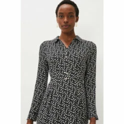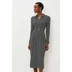 Classy yet fun, our Tiegan dress in black is the ultimate understated statement piece to add to your wardrobe, making it incredibly versatile. The dress features a collared neckline and subtle buttons to fasten, as well as a silver D ring belt. Pair with some black heels and a classic trench coat to create the perfect desk-to-dinner outfit.
