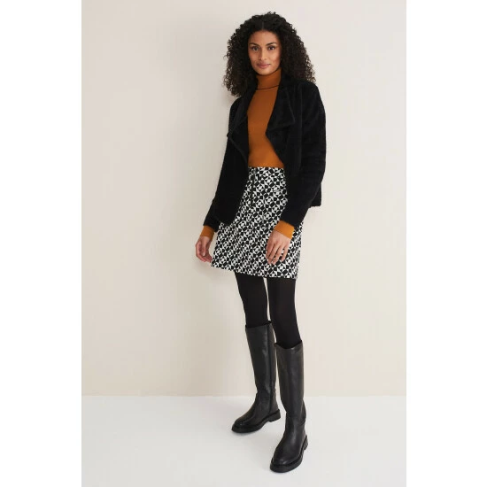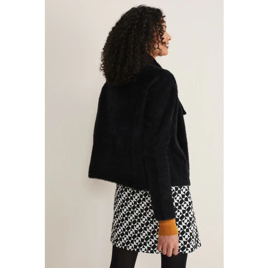The perfect jacket to layer over all of your outfits this season. Our versatile black fluffy jacket is designed to a slim fit with zip up detailing. It’s the cosy style of the season that will go with almost any outfit.
