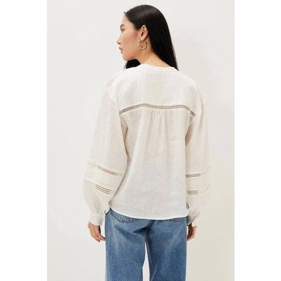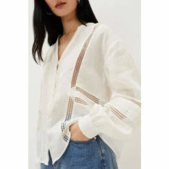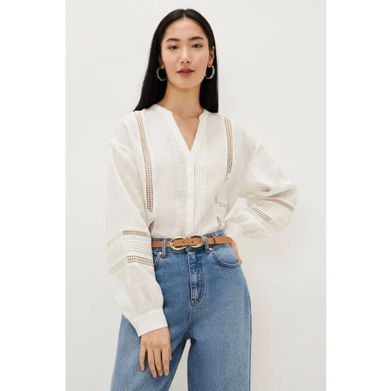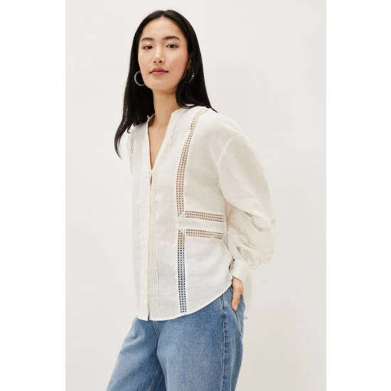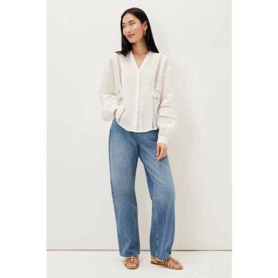 Romantic, airy blouses are a summer wardrobe essential. Our Ada blouse is cut from 100% linen that’s decorated with pretty broderie anglaise detailing and features a feminine v-neck. The blouse has working buttons and the silhouette floats loosely away from the body, as do the airy blouson sleeves. Wear with everything, from jeans, to denim shorts, to skirts. Part of our Sustainably Sourced Collection. With no synthetic inputs, linen is a natural fibre with low environmental impact. Find out more about the sustainable fibres we source https://www.phase-eight.com/about-us/sustainably-sourced/sustainable-fibres