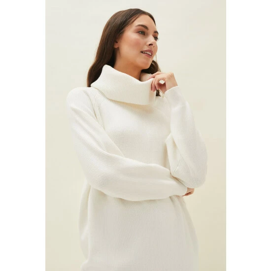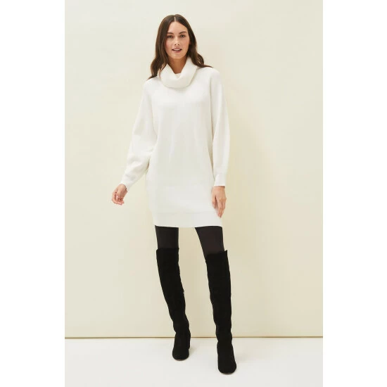 With its relaxed silhouette, chunky roll neck and supersoft touch, the Nisha jumper dress is so comfortable, you won’t want to take it off.