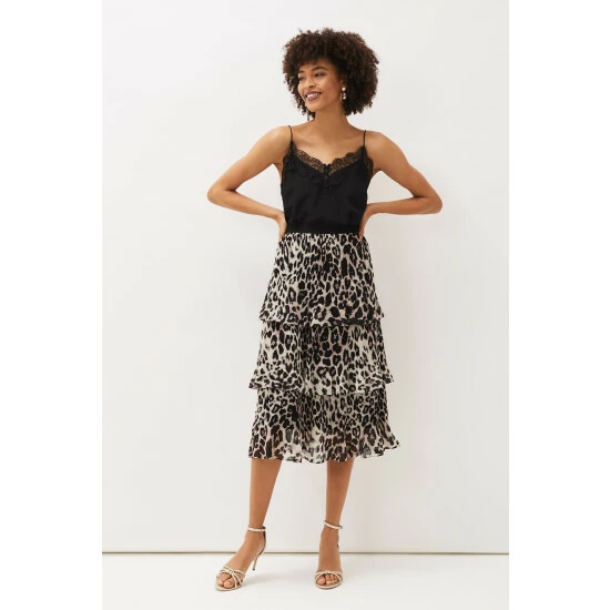 Take a walk on the wild side with our Chelsea skirt. Designed in a tiered silhouette that offers wonderful movement as you walk, this style showcases a striking leopard print that is brand new for Phase Eight, and always on-trend. Phase Eight styled it here with their black cami top for an easy evening look.