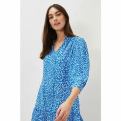 Phase Eight’s best-selling Penele dress in a blue ditsy pattern is the bright addition you need. With an easy tiered, swing silhouette and blouson sleeves, their Penele dress is the perfect everyday dress. Wear it with white trainers for a breezy spring style. Part of Phase Eight’s Sustainably Sourced Collection. This style has been made from certified renewable wood sources.