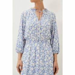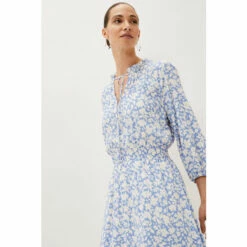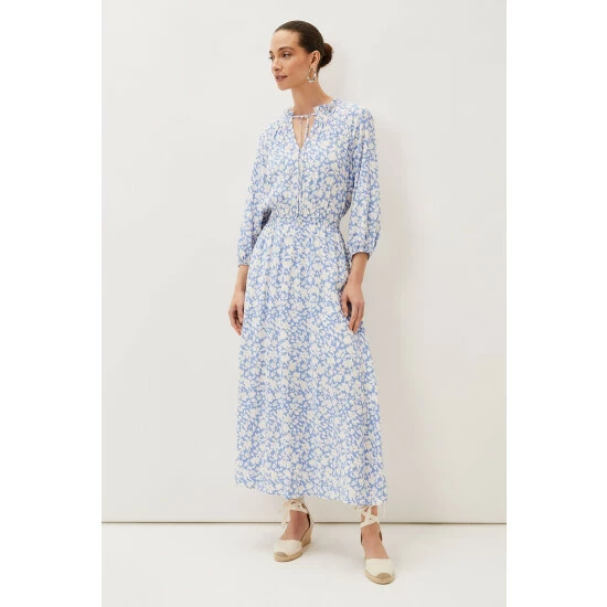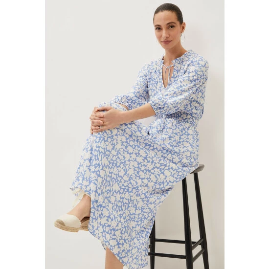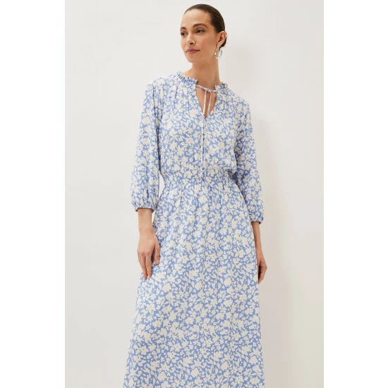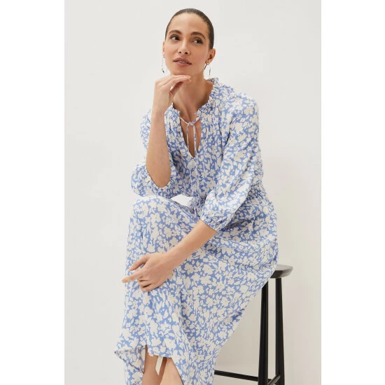 Phase Eight’s Phillipa floral dress is going to be your new repeat style. This floaty midi-to-maxi dress is decorated in pale blue blooms and features blouson sleeves, a flattering elasticated waistband and a dainty tie at the neck. These details create a feel-good dress that you won’t want to take off. Wear it with wedges for a dressed up day-to-evening look. Part of their Sustainably Sourced Collection. This style has been made from certified renewable wood sources.