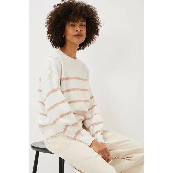 Refresh your collection of stripes with this cosy knitted jumper, complete with statement bell sleeves and a ribbed texture throughout.