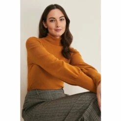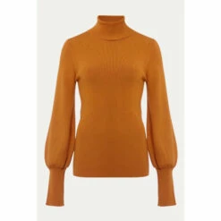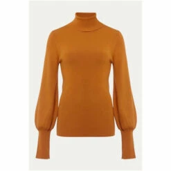 Add our Gwyneth jumper to your capsule wardrobe. Designed in a luxe fine knit with statement balloon sleeves, our amber shade jumper will go with all of your seperates. We ve styled ours here with an abstract print skirt for a chic monochrome look.