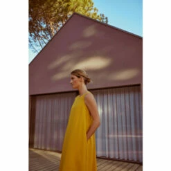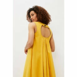 Totally effortless and brilliantly versatile, this linen dress will be a staple of your summer wardrobe. Designed with a sunny yellow, this high neck, sleeveless dress is cut from an airy linen-cotton blend and features handy pockets, and keyhole back detailing. Style with sandals or trainers for a casual, summer look. By choosing their cotton products, you’re supporting their investment in Better Cotton s mission.