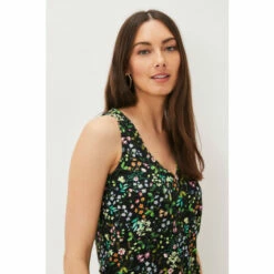 A contemporary style to add to your everyday wardrobe. Designed in a versatile black shade and decorated with delicate florals, our sleeveless top features a feminine V-neckline. They’ll be wearing this with all their separates this spring/summer. Part of their Sustainably Sourced Collection. This style has been made from certified renewable wood sources. LENZING™ and trade; ECOVERO™ and trade; viscose uses a responsible production process, generating up to 50% lower emissions and water impact than generic viscose. LENZING™ trade; and ECOVERO™ and trade; are trademarks of Lenzing™ AG.